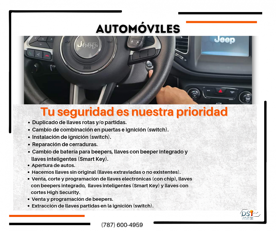 Cerrajero para San Juan, Bayamon, Guaynabo, Caguas, Catan̈o, Carolina, Dorado, Toa Baja, Toa Alta, Arecibo, Barceloneta, Corte y programación: llaves con chip, llaves con beeper integrado y llaves inteligentes. Switch. Llave perdida. Apertura auto.