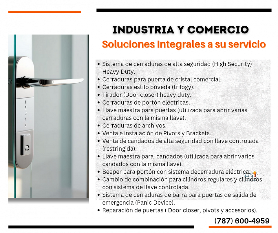 Servicios de cerrajería para Auto, Residencia, Comercio e Industria